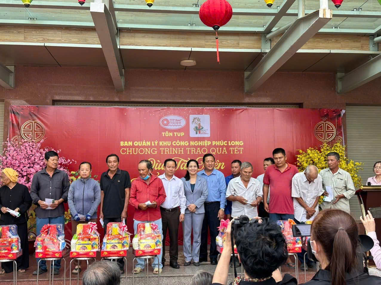 On February 1, 2024, a memorable event took place at Phuc Long Industrial Park in Ben Luc town, Ben Luc district, Long An province. Phuc Long Investment and Construction Company Limited in collaboration with TVP Steel Joint Stock Company organized a Tet gift giving program called "New Year gifts, welcoming the New Year reunion" with nearly 600 gifts to share joy with disadvantaged families in Ben Luc district, Can Duoc district and the Long An province blind association.
