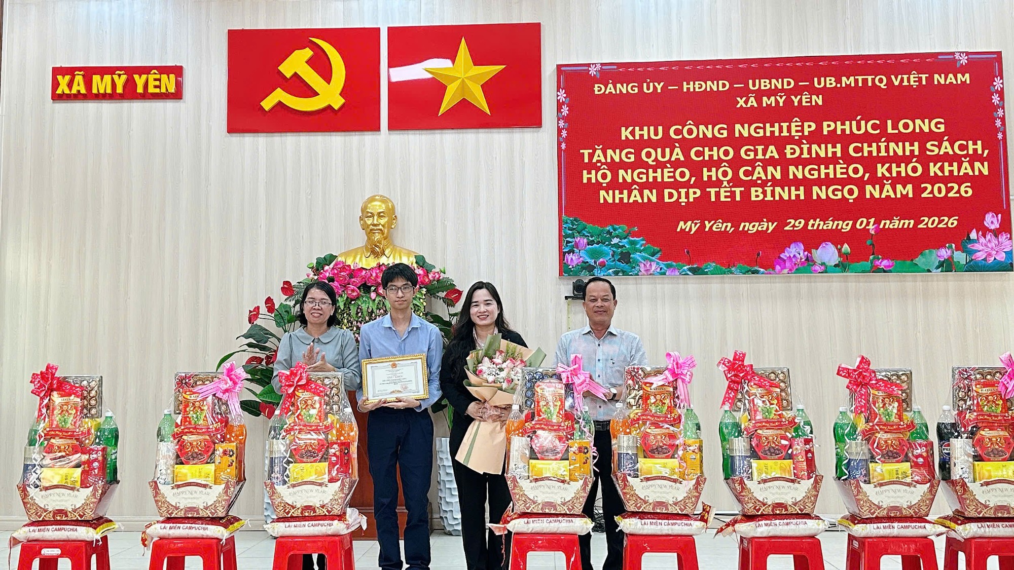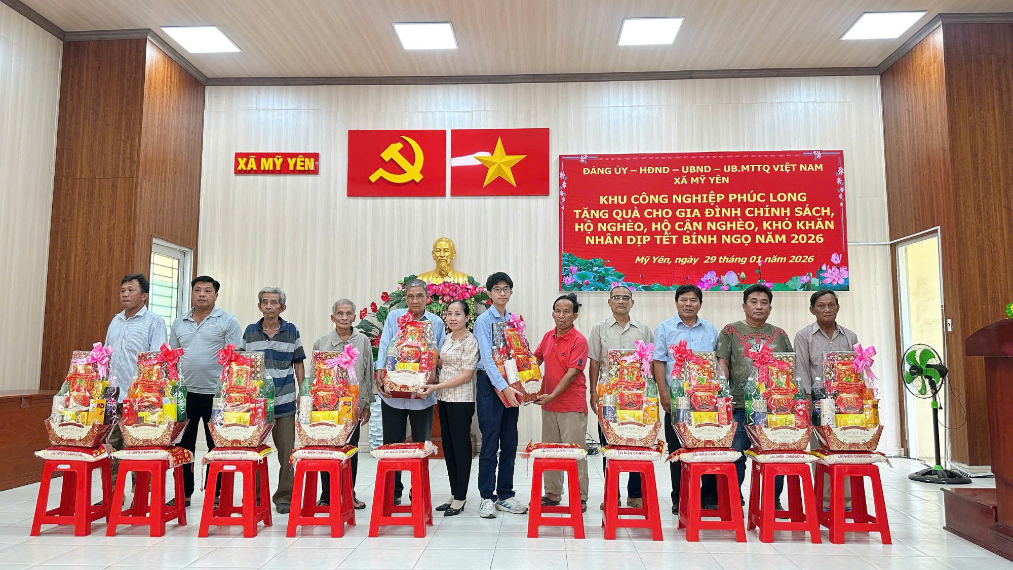 Ngày 29 tháng 01 năm 2026, nhân dịp Tết đến Xuân về, Khu Công nghiệp Phúc Long đã tổ chức chương trình trao tặng 100 phần quà Tết cho các gia đình chính sách, hộ nghèo, hộ cận nghèo và các hoàn cảnh khó khăn trên địa bàn xã Mỹ Yên.