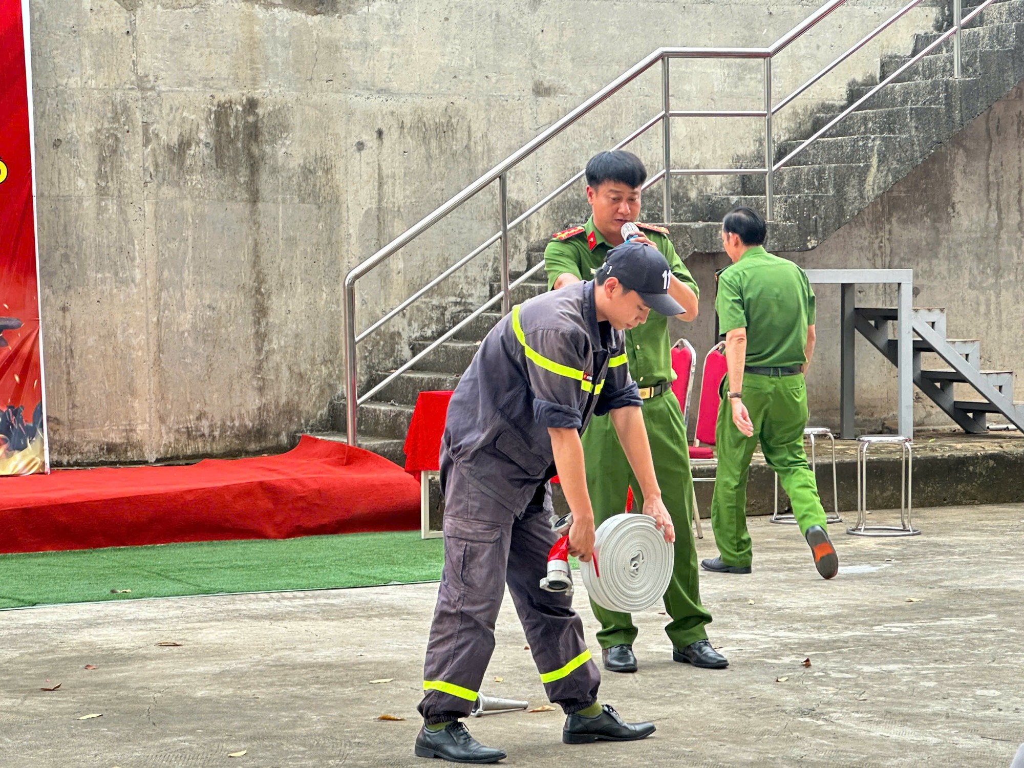 Đại diện Phòng Cảnh sát PCCC & CNCH - khu vực Bến Lức đã trực tiếp giảng dạy, chia sẻ kinh nghiệm thực tế và giải đáp thắc mắc, giúp học viên nắm vững kỹ năng cần thiết để áp dụng hiệu quả tại đơn vị.