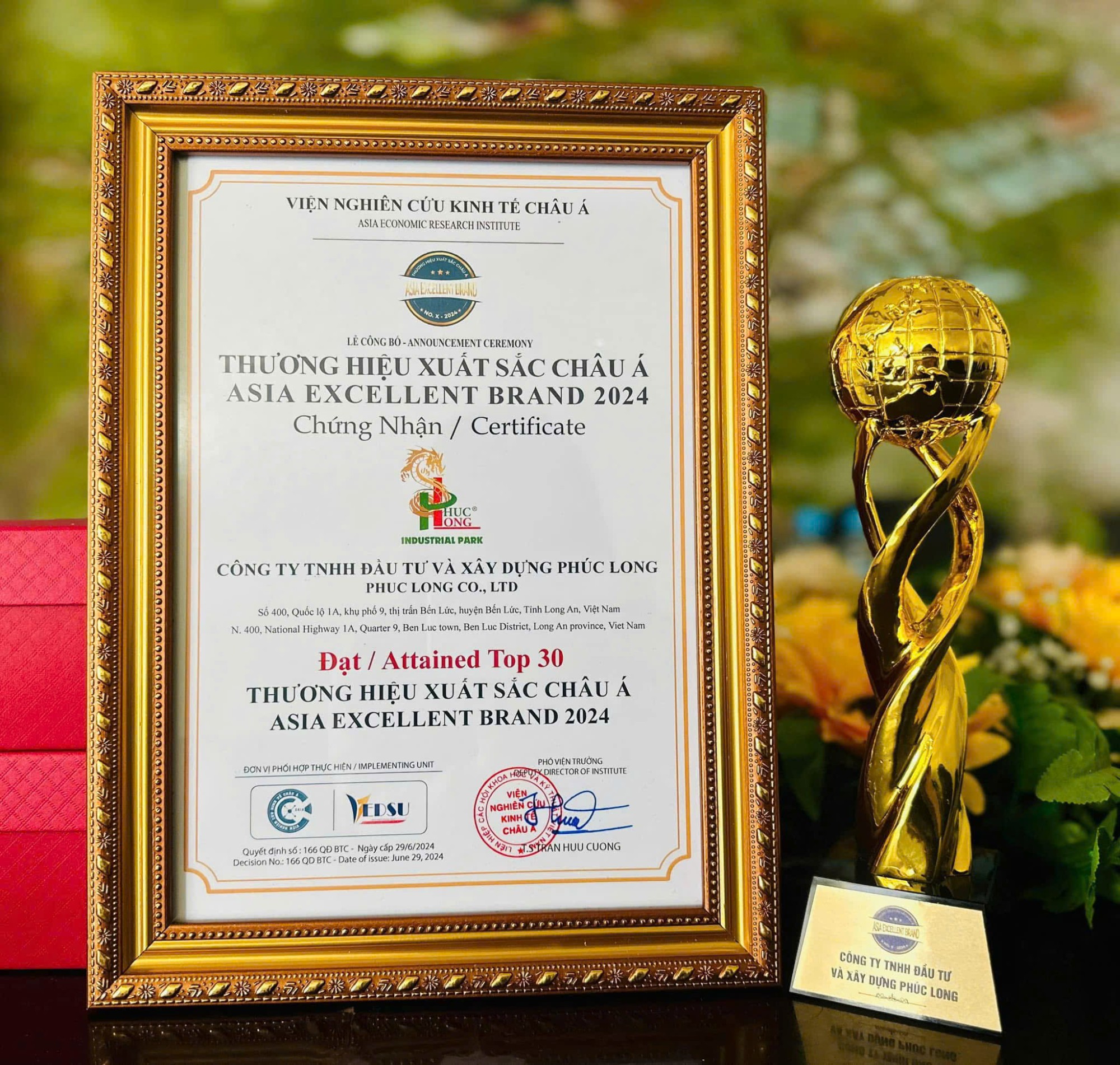 Sáng ngày 29/06/2024, Công ty TNHH Đầu tư và Xây dựng Phúc Long – Chủ đầu tư các dự án Khu công nghiệp Phúc Long vinh dự được chứng nhận Thương Hiệu Xuất Sắc Châu Á 2024 Tại lễ công bố “Thương Hiệu Xuất Sắc Châu Á 2024” do Viện nghiên cứu kinh tế Châu Á tổ chức tại Thành phố Hồ Chí Minh vừa qua, Công ty TNHH Đầu tư và Xây Dựng Phúc Long (chủ đầu tư dự án Khu công nghiệp Phúc Long) vinh dự được chứng nhận “Thương Hiệu Xuất Sắc Châu Á 2024”. Giải thưởng Thương Hiệu Xuất Sắc Châu Á 2024 được trao hằng năm cho những doanh nghiệp có thành tích nổi bật trong việc nâng cao chất lượng sản phẩm, dịch vụ, năng lực cạnh tranh và hiệu quả hoạt động, hội nhập với nền kinh tế khu vực và thế giới, đóng góp tích cực cho cộng đồng và xã hội.