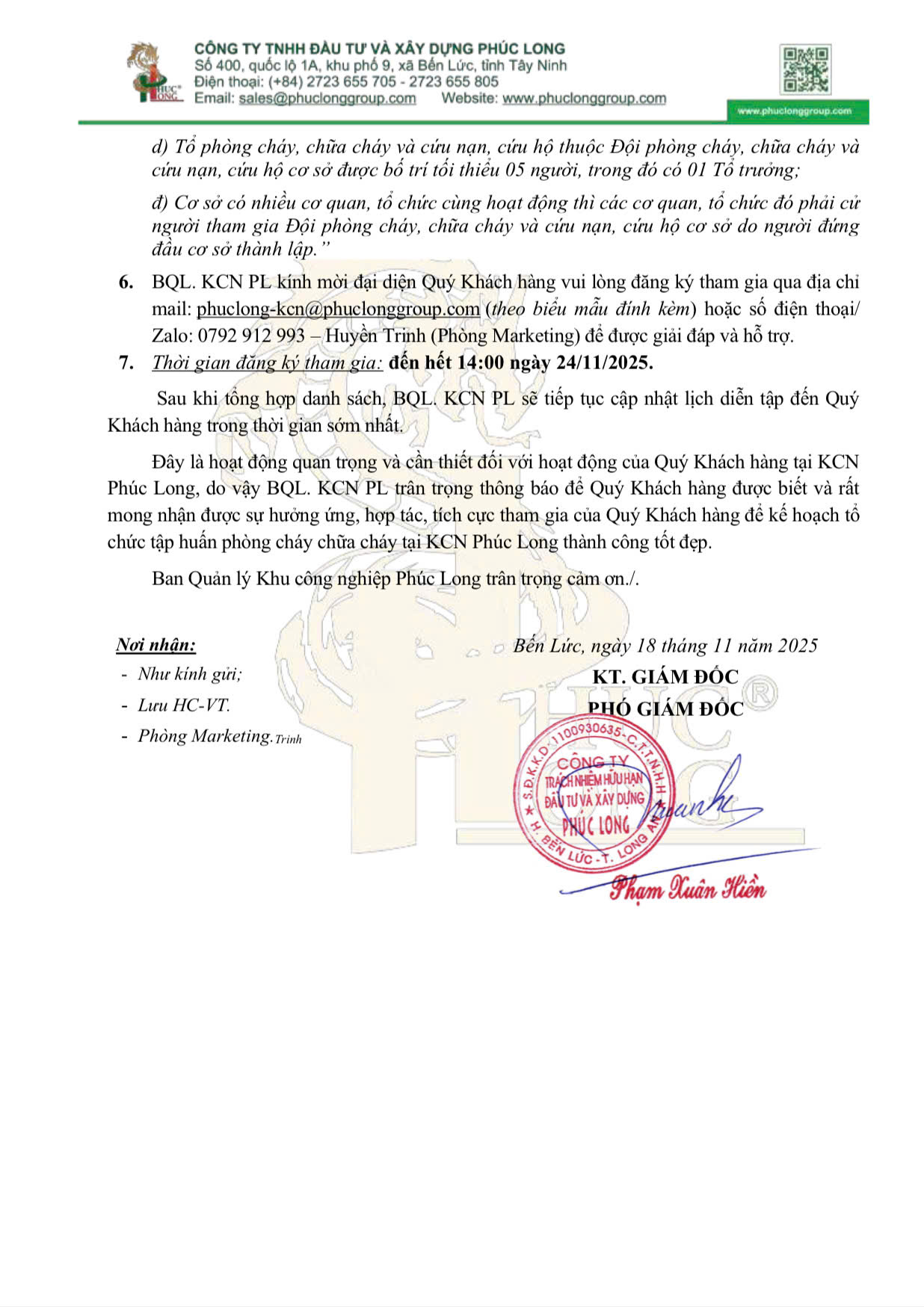 Ban quản lý KCN Phúc Long phối hợp cùng Phòng cảnh sát PCCC&CNCH tỉnh Long An tổ chức buổi tập huấn PCCC tập trung dành cho đối tượng người lao động, thành viên đội phòng cháy chữa cháy cơ sở tại các doanh nghiệp đang làm việc tại KCN Phúc Long.
